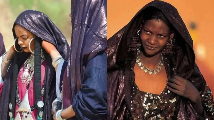 وأوضحت السيدة تفريج بمناسبة المهرجان الثقافي الوطني لإبداعات المرأة بـ “أن هذا الزي” يتكون من ثوب مصنوع من قطعة قماش بيضاء بخط أسود مرفق بحزام من الحرير الأخضر أو الأصفر يوضع حول الخصر وغطاء رأس ذي لون أزرق نيلي وبمرافقة حلي وإكسسوارات فضية تقليدية خاصة”.