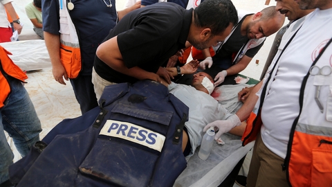 قال منتدى الإعلاميين الفلسطينيين، السبت، إنّ الاستهداف المتكرر للصحفيين خلال أداء واجبهم المهني يجعل القوانين الدولية والمواثيق الإنسانية المؤكدة على حرية الصحافة وحماية الصحفيين مجرد حبر على ورق. وأدان منتدى الإعلاميين الفلسطينيين استهداف جيش الاحتلال الإسرائيلي الطواقم الإعلاميّة خلال أداء واجبهم الإعلامي بصاروخ أطلق على سيارة تقلّهم في مخيم النصيرات وسط قطاع غزة.