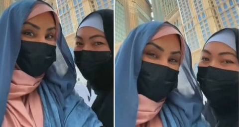 تداول رواد مواقع التواصل الاجتماعي مقطع فيديو للفنانة الإماراتية أحلام الشامسي برفقة عاملة منزلها “كريس” من داخل الحرم المكي الشريف وهما يرتديان الحجاب.
