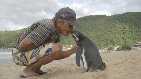يقوم بطريق بالسفر لمسافة 8 آلاف كيلومتر كل سنة من أجل الالتقاء بمنقذه، حيث يبدأ سفره انطلاقا من سواحل شيلي والأرجنتين إلى سواحل البرازيل، حيث يلتقي صياد سمك عجوز يدعى “جيوا بريرا دي سوزا” يبلغ من العمر 71 سنة كان قد أنقذه من الموت. ويعود تاريخ هذه العلاقة إلى 5 سنوات، حيث وجد الصياد البطريق مشبعا بالزيوت بين الصخور ويكاد أن يغرق بالقرب من مدينة “ريو دي جانيرو”، فقام الصياد بحمل البطريق ومداواته من الجراح وتنظيف ريشه من الزيوت وأطلق عليه اسم “ديندم”، حينها عاش البطريق معه لبضعة أسابيع اعتاد فيها على التقبيل واللعب، وبعدها ترك له الصياد حرية الاختيار في المغادرة فانطلق البطريق عائما في المياه، ظن الصياد أنه لن يراه مطلقا لكنه فوجئ به يعود مرة أخرى في العام الموالي وفي نفس الموعد لرؤية من أنقذه من الهلاك، حيث يقضي “ديندم” 8 أشهر في سواحل الأرجنتين والشيلي ثم يعود مرة أخرى إلى البرازيل قاطعا مسافة 8000 كيلومتر لقضاء باقي العام مع الصياد.