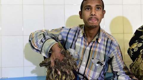 ذكرت إحدى المستشفيات في بنجلاديش، أن مريضا يطلق عليه اسم “الرجل الشجرة” لظهور أفرع ضخمة من الشجر -مثل النتوءات- على يديه وقدميه، سيجرى له عملية جراحية لإزالة الأورام التي بدأت تظهر للمرة الأولى منذ 10 أعوام، ويخضع حاليا السيد “أبو باجاندار”، للفحوص الطبية استعدادا لإجراء عملية جراحية لقطع هذه الزوائد التي ظهرت في جسمه، والتي يفق وزنها 5,30 كغ ظهرت على يديه وقدميه.
