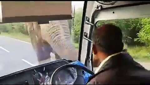 انتشر مقطع فيديو على مواقع التواصل الاجتماعي يظهر لحظة نادرة لفيل يوقف حافلة في منتصف الطريق لسرقة الطعام.