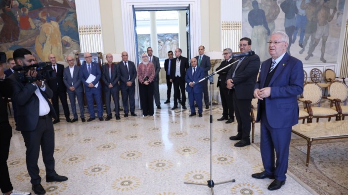 أشرف عزوز ناصري، رئيس مجلس الأمة، ظهيرة اليوم الإثنين، بمقر المجلس، على حفل استقبال نُظم بمقر المجلس تكريماً لإطارات وموظفي ومستخدمي مجلس الأمة، الذين ساهموا في إنجاح مشاركة البرلمان بغرفتيه في الطبعة الثامنة والعشرين (28) لصالون الجزائر الدولي للكتاب – سيلا 2025.