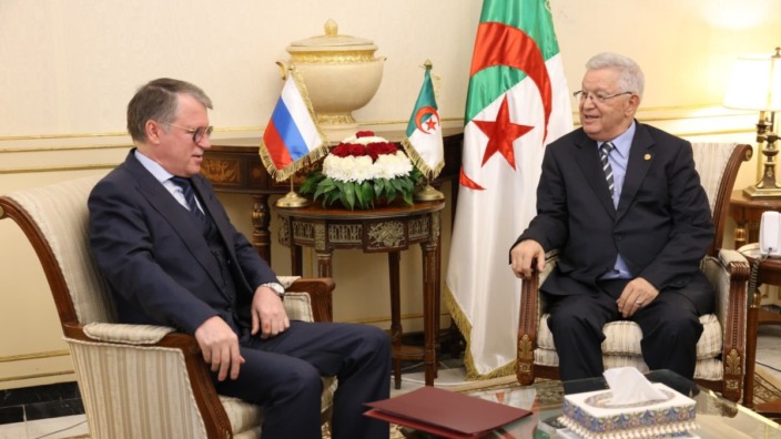 وخلال هذا اللقاء, سلم السفير الروسي للسيد ناصري رسالة تهنئة من نظيرته السيدة فالونتينا ماتفينكو, رئيسة المجلس الفيدرالي للجمعية الفيدرالية لروسيا, بمناسبة انتخابه رئيسا لمجلس الأمة وأوضح البيان أن هذا اللقاء شكل سانحة للتطرق إلى راهن وآفاق علاقات الصداقة التاريخية العريقة التي تربط الجزائر وروسيا والتي تعرف تطورا نوعيا منذ الاتفاق على إعلان الشراكة الاستراتيجية المعمقة بين البلدين والتي تم توقيعها في جوان 2023, برعاية وإشراف من قائدي البلدين, رئيس الجمهورية, السيد عبد المجيد تبون, ورئيس فيدرالية روسيا, السيد فلاديمير بوتين كما تباحث الجانبان سبل الاستثمار في هذه العلاقة المتميزة, من أجل الدفع بها إلى مستوى أعلى وتوسيع مجالاتها بين البلدين, يضيف البيان. وبالمناسبة, أشاد السيد ناصري بديناميكية التعاون والتنسيق بين الجزائر وروسيا والتي تشهد توسعا منتظما وشاملا لكافة المجالات, في ظل حركية نهضوية غير مسبوقة تشهدها الجزائر الجديدة المنتصرة بقيادة رئيس الجمهورية كما ذكر بمزايا قانون الاستثمار الذي صادق عليه البرلمان بغرفتيه والذي يوفر بيئة جاذبة للمستثمرين, من خلال مجموعة من الحوافز والمزايا, حيث يهدف هذا القانون إلى تشجيع الاستثمار الأجنبي والمحلي بضمانات عالية, في إطار توجهات الجزائر نحو الانفتاح وتنويع الاقتصاد الوطني. على صعيد آخر, توقف السيد ناصري عند الجهود التي تبذلها الجزائر من أجل إيجاد حلول عادلة وسلمية للنزاعات, في إطار الحوار والتفاوض, عبر دبلوماسيتها النشطة على مستوى مجلس الأمن الدولي وتمسكها بأمن واستقرار منطقة الساحل. كما جدد, في هذا الصدد, تأكيد مواقف الجزائر المعروفة والثابتة تجاه حق الشعب الفلسطيني في إقامة دولته المستقلة وعاصمتها القدس, وحق الشعب الصحراوي في تقرير المصير, وفق القرارات والمواثيق الأممية. أما السفير الروسي، فقد أشاد من جهته بارتقاء التعاون البيني إلى مستويات رفيعة, مؤكدا على أهمية تعزيز مستوى العلاقات وتوسيعها من جهة أخرى, أكد الطرفان على أهمية التبادلات والمشاورات البرلمانية بين الهيئتين التشريعيين, على المستويين الثنائي ومتعدد الأطراف, لمرافقة التعاون القائم بين البلدين في جميع المجلات, وفقا لما أفاد به ذات البيان.