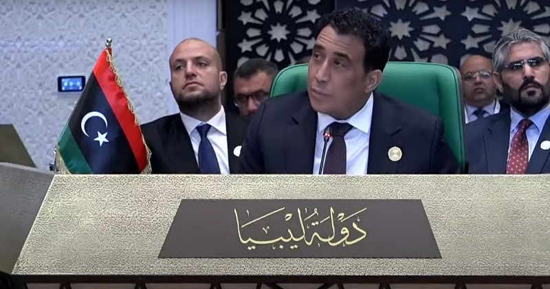 ألقى رئيس المجلس الرئاسي الليبي، محمد المنفي، اليوم، بقصر المؤتمرات الجزائر العاصمة، كلمة، خلال أشغال اليوم الثاني من القمة العربية، أكد فيها على ضرورة انسحاب جميع القوات الأجنبية من الأراضي الليبية.
