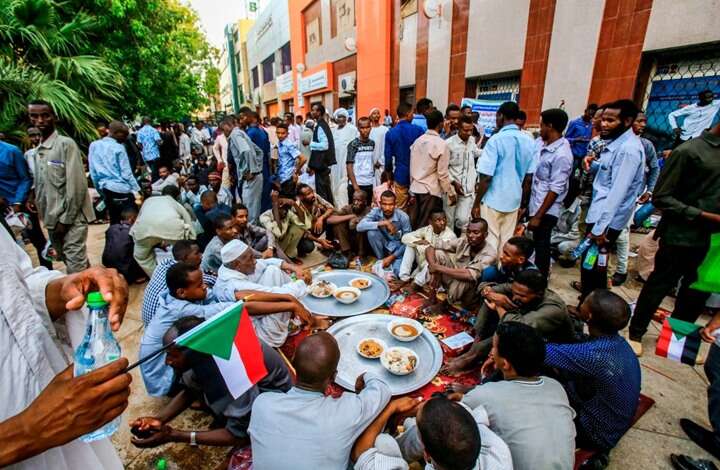وتداول مستخدمو مواقع التواصل الاجتماعي في السودان مقاطع مصورة من ساحة الاعتصام في رمضان الجاري، لتشجيع الثوار على البقاء في الساحات.