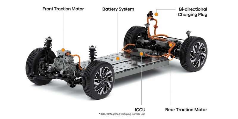 ستتوفر القاعدة الكهربائية الجديدة لسيارات هيونداي وكيا وجينيسيس، وستأتي قاعدة العجلات المسماة E-GMP بأنظمة تحكم حديثة بالإضافة لنظام الدفع الخلفي الأساسي أو الدفع الكلي الاختياري بحسب السيارات التي ستحملها، والتي يمكن أن تكون صغيرة بحجم سيارة كوبيه رياضية أو كبيرة بحجم SUV.