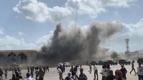وقعت ثلاثة انفجارات عنيفة، الأربعاء، في مطار العاصمة اليمنية المؤقتة عدن، جنوبي البلاد، عقب هبوط طائرة تقل أعضاء الحكومة الجديدة على مدرج المطار.