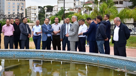 وقد أسدى الوالي بعدها تعليمات صارمة بضرورة مضاعفة الجهود للإسراع في الانتهاء من الأشغال المتبقية وتسليم المشروع في أقرب الآجال، كما عاين في محطته الثانية ببوزريعة حالة عدد من النافورات المتوقفة بالحديقة، أين أعطى أوامر بضرورة التكفل بإصلاح الأعطال المسجلة على مستوى كل نافورة من حيث محركات ضخ المياه، وكذا التجهيز بالإنارة الفنية، كما أمر بالاهتمام والاعتناء الدوري بالمياه والمساحات الخضراء لإعطاء الحديقة منظر جمالي يليق بسكان المنطقة والوافدين إليها، شأنها في ذلك شأن وضعية الحديقة الحضرية “ثورة نوفمبر” بوادي حيدرة، بلدية الأبيار، إذ وبعد وقوفه على الوضعية التي تتواجد بها الحديقة، أمر كل المتدخلين من المؤسسات العمومية للولاية وكذا المصالح البلدية بضرورة التكفل بإصلاح الأعطال التي تحول دون دخول النافورة التي تتوسط الحديقة حيز الخدمة، وكذا التجهيز بالإنارة الفنية. أما في محطته الرابعة فقد طاف على مختلف الورشات الجارية على مستوى مشروع تهيئة الفضاء المقابل لجامع الجزائر، بحضور ممثلي مكتب الدراسات والمتابعة ومؤسسات الإنجاز.
