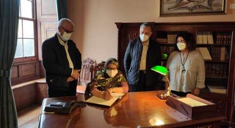 وفي إطار زيارة العمل، الجمعة أستقبلت وزيرة التعاون السيدة فاطمة المهدي، برفقة ممثل جبهة البوليساريو بكناريا السيد حمدي منصور، من طرف سلطات بلدية لالاگونا La Laguna خاصة السيد “روبين اسكانيو” نائب عمدة البلدية ومستشار التعاون والشؤون الاجتماعية، إلى جانب السيد “خوسي لويس ايرنانديث” مستشار البيئة، كما حضر اللقاء “البيرتو نيگرين” رئيس الجمعية الكنارية للتضامن مع الشعب الصحراوي بتنريفي.