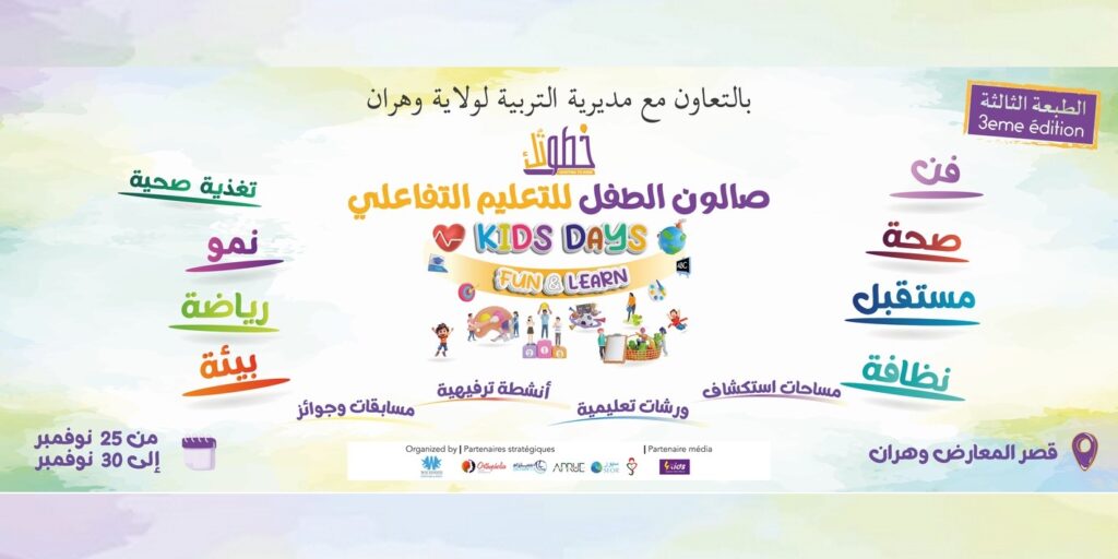 يحتضن قصر المعارض بوهران الطبعة الثالثة لأيام الطفل للتعليم التفاعلي “خطوتك” خلال الفترة الممتدة من 25 إلى 30 نوفمبر الجاري , حسبما أستفيد يوم الإثنين من المنظمين.وستخصص هذه التظاهرة المنظمة بمبادرة من وكالة “وين ادفانست” بالتعاون مع مديرية التربية, لتلاميذ الطور الإبتدائي حيث سيستفيدون بمعية أوليائهم من ورشات ونشاطات بيداغوجية ومساحات تعليمية وفضاءات استكشاف تقدم فيها ورشات تعليمية مبتكرة مجانا, وفق بيان للوكالة المذكورة .