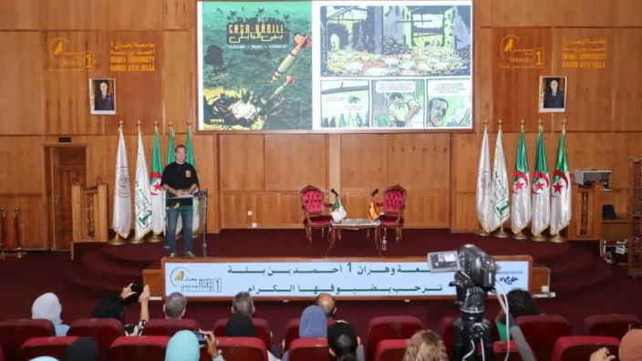 وتنظم هذه التظاهرة من طرف دار البحر الأبيض المتوسط (كازا ميديتيرانيو) الدولية ومعهد سيرفانتس الاسباني وجامعة وهران 1 “أحمد بن بلة” حيث افتتحت على مستوى هذه الأخيرة سلسلة ورشات عمل حول القصة المصورة العربية لفائدة طلبة معهد الفنون بذات الجامعة من تنشيط مؤسسة “ألفنار” الاسبانية التي تهدف إلى التقريب بين الثقافتين العربية والإسبانية.