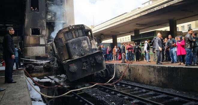 وأظهرت صور نشرت على مواقع التواصل الاجتماعي أعمدة دخان تتصاعد من مبنى المحطة الواقعة في ميدان رمسيس بوسط القاهرة. كما ظهرت في لقطات أخرى جثث متفحمة على السكة الحديدية.