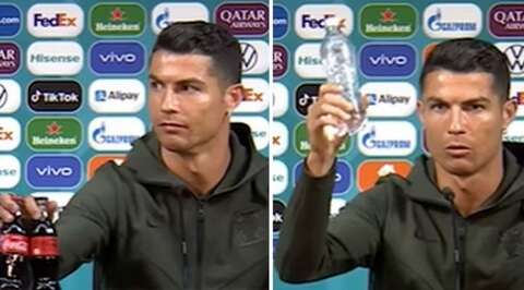 وقبل بدء المؤتمر قام رونالدو بإزاحة زجاجتي “كوكا كولا” من أمامه ووضع زجاجة مياه بدلاً منهما، قائلاً “اشربوا الماء” كونها الخيار الصحي.