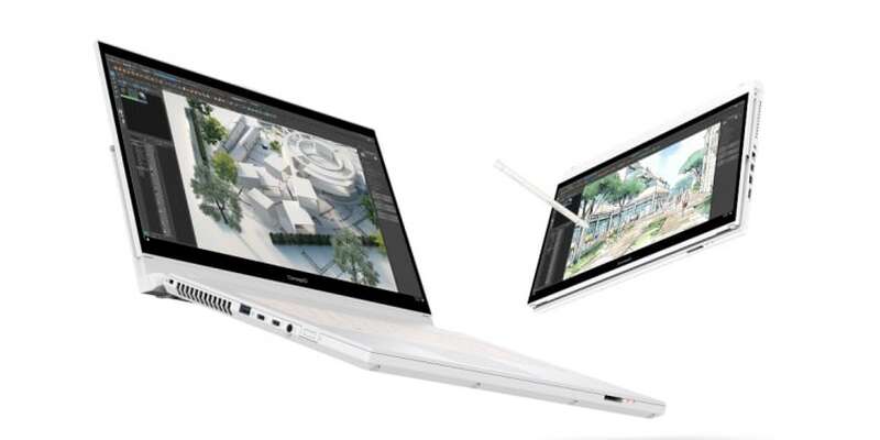 ولقد كشفت Acer أيضاً عن جهاز ConceptD 5 Pro الذي يتوفر بكرت شاشة NVIDIA RTX A5000 أو RTX A3000، كما أطلقت الشركة تحديث لجهاز ConceptD 7 Ezel المتحول 2 في 1، الذي يأتي أيضاً بالجيل 11 من معالجات إنتل Core i7-11800H وكرت شاشة GeForce RTX 3080.